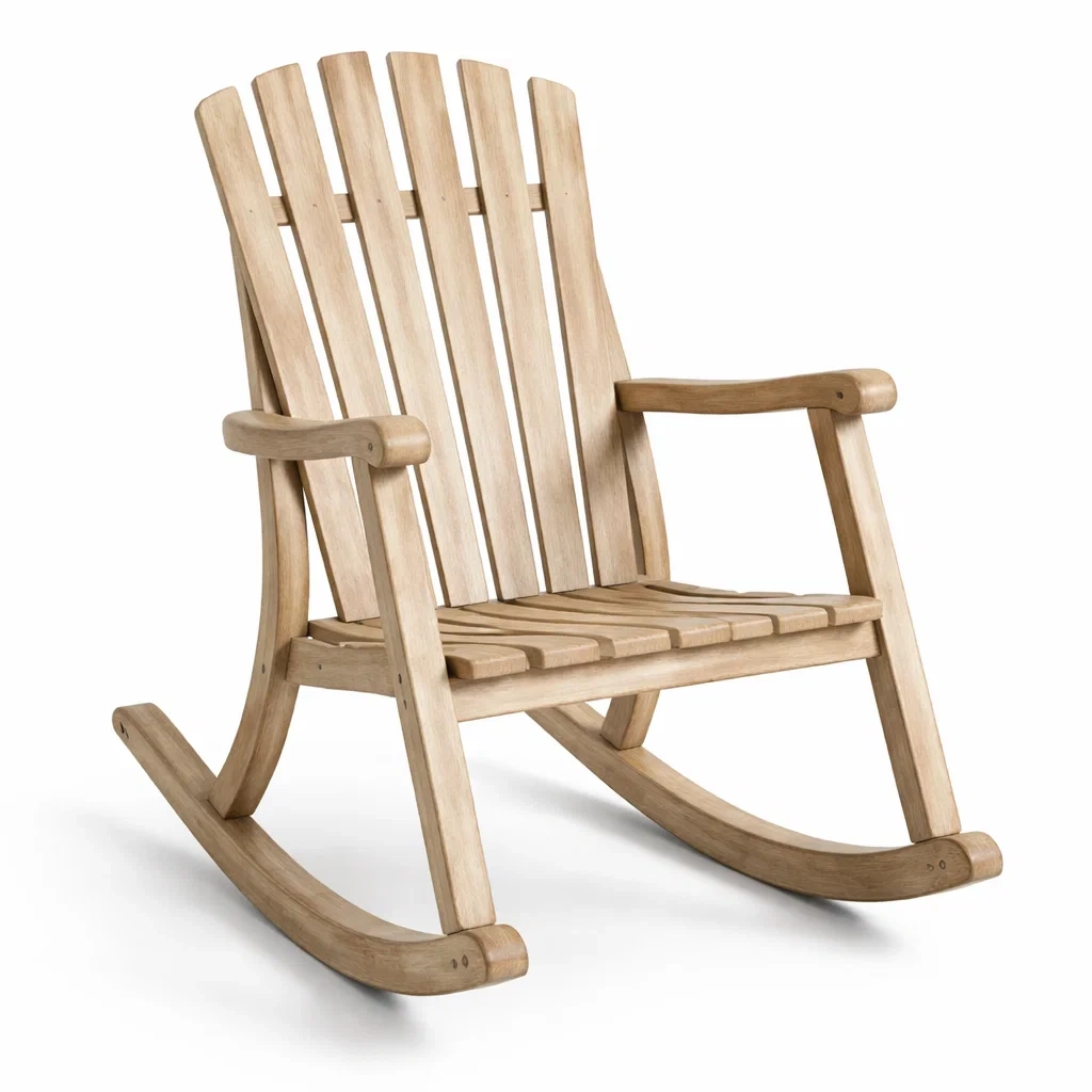 Fauteuil à bascule en bois de teck et rotin avec coussin en polyester blanc