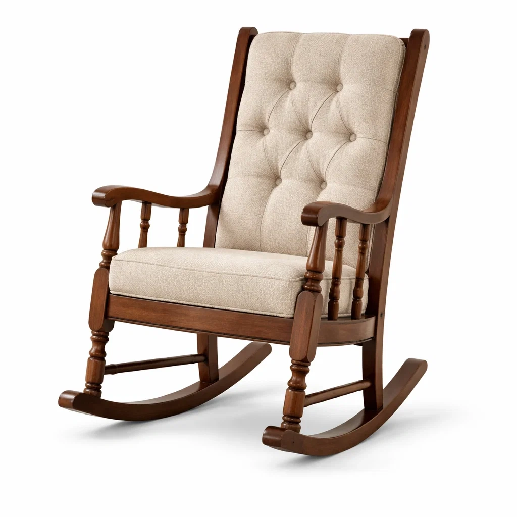 Fauteuil à bascule en bois de hêtre avec assise en lin et dossier en rotin