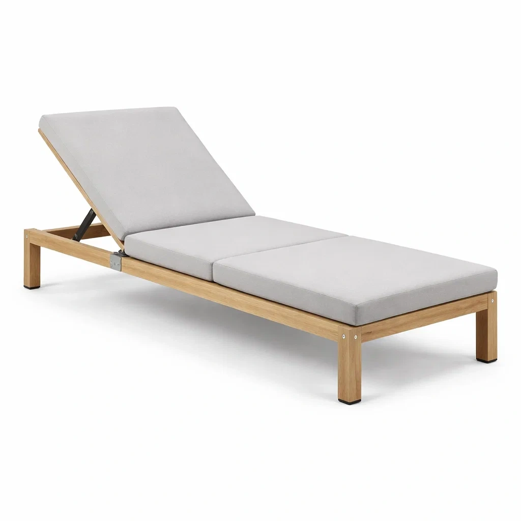 Cette chaise longue est fabriquée avec une structure en bois d'acacia solide et durable, offrant un soutien fiable. Le coussin est en tissu polyester, assurant un confort lors de l'utilisation.