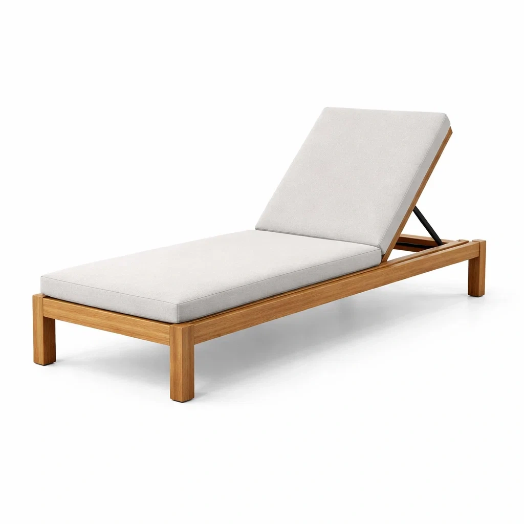 Chaise longue en bois de teck avec coussin en polyester beige